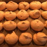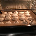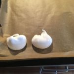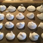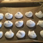 Get baking form and put small meringues on it with spoon. In background warm up oven up to around 130°C-140°C.