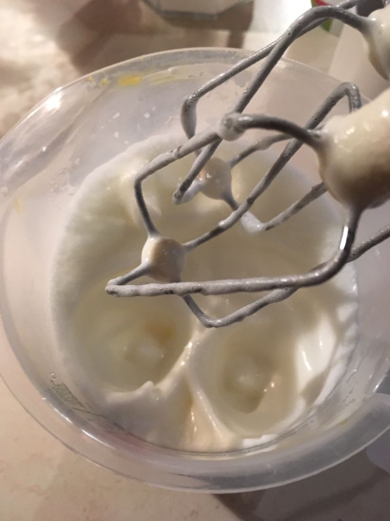 Fortunately it is quick and simple recipe. Start with mixing egg white with pinch of salt until you get rigid foam.